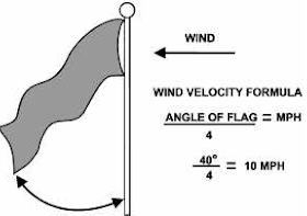 The flag method is primary method used on a known distance range. To estimate wind velocity in miles per hour: Estimate the angle created between the flagpole and the flag in degrees.