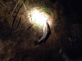 A little midnight tight line action with blood bait.