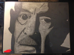 This is an old one I whipped out in about 3 hours with charcoal and a shading cone. It was one of the first ones I did in a portrait project series for college. Yes I went to school for higher education in the Arts, but like everything else in my life, I do things for so long and then I'm on to something else looking for what's out there that gives me that feeling of "new and neat". Graphic Design and Photoshop wasn't all it was cracked up to be, I found out. I ended up finishing school in criminal justice and then found out that it wasn't for me either as I don't really have the want to for infringing on people's rights and harassing them for bullshit to keep revenue rolling in for the city or county. What I do now for a living is wayyyyyyyyyyy off from what I went to school for. Funny how life plays out at times.