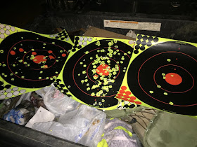 Care to guess which target I was on? The one on the right is where we finished with his last pistol shoot. Mother of God, that was a huge improvement from him not even hitting paper and digging the dirt out all around it.