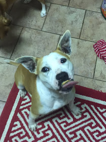 She had her first peanut butter experience the other night, and holy shit, was that a fun thing to watch... She now enjoys her Kong jam packed with peanut butter. Hey, better the Kong than my damn sheet rock and door trim. Like I said, it's taken a while for her to completely trust us, and now every day when I hit the door it's like a damn linebacker hitting me because she can't get to me fast enough to lick me and show me she loves and misses me when I'm gone. She's turned out to be a great dog. We've only had to stitch up one of the little dogs once, but that little dog had it coming because she wouldn't leave her alone, as she was still learning the layout of the house and learning her place in our pack when that happened. Her name is Mama Dog and she looks after our youngin's like they are hers. It's a pretty neat thing actually. Anytime someone cries out or whines, she's right there to see what the commotion is. I wouldn't trade her for a golden monkey.